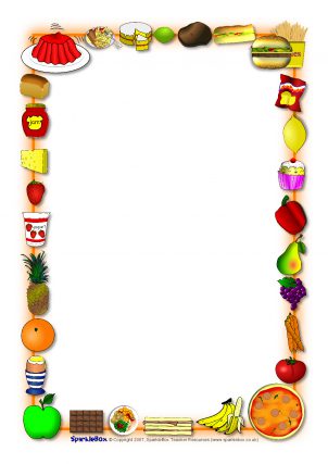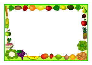 Portrait and landscape fruit and vegetable-themed A4 page borders