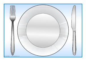 A set of simple editable templates featuring a dinner plate with knife and fork