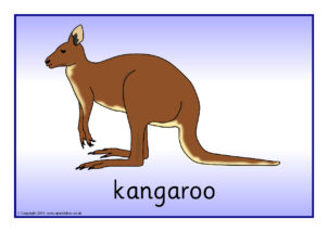 A set of simple A4-sized posters featuring different Australian animals and their names in clear text