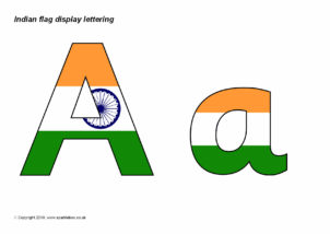 A PDF document with 26 Indian flag-themed alphabet letters (upper and lowercase)