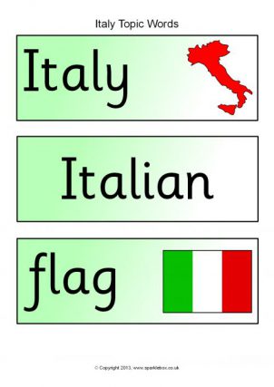 Italy Topic Word Cards (SB9504) Printable word and picture cards featuring things associated with the country of Italy
