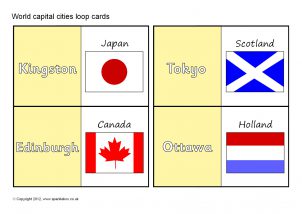 A set of bingo boards and picture cards featuring Commonwealth countries