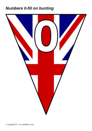The numbers from 0 to 50 presented on printable Union Flag bunting