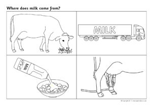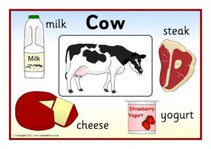 A set of printable cards for a matching activity where children can match the animals to their produce