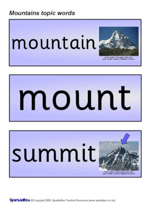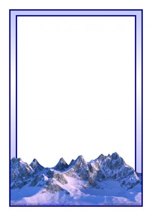 Portrait and landscape page borders featuring an image of snow-capped rocky mountains