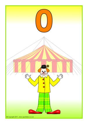 A set of A4 printable posters featuring juggling clowns with numbers from 0 to 10