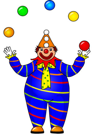 A large printable juggling clown that prints over 8 landscape A4 pages