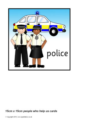 A set of printable cards (15cm by 15cm size) featuring various people who help us