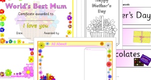 A set of simple Mother’s Day card designs that can be printed on card for children to colour and decorate.