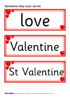 A useful set of printable topic words related to Valentine's Day.