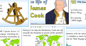A useful set of printable posters showing the key events in the life of Captain James Cook.