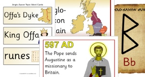 A set of printable cards with words and pictures linked to the Anglo-Saxons.