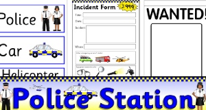 A very useful group of printable resources for use in a Police Station role-play are. Includes a re-sizable banner image and printable wanted posters. Also included is a set of labels with pictures plus a ‘make a disguise’ set where children can decorate the faces with various disguises.