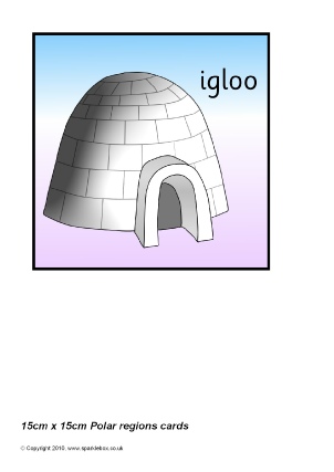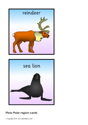 A set of printable cards (15cm by 15cm size) featuring things associated with the Polar regions.