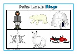 Printable bingo picture boards and word cards linked to the Polar regions.