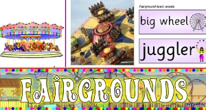 A set of 16 A4-sized printable posters featuring pictures of various things you would find at a fairground.