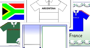 Portrait and landscape A4 page borders with a rugby theme. Includes editable Microsoft Word templates as well as resizable JPG images.